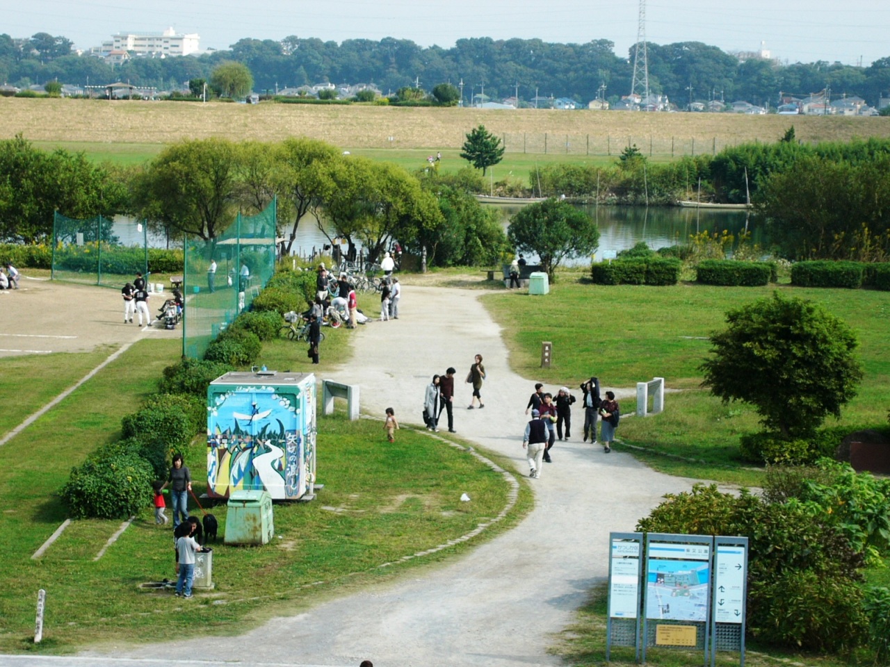 水元公園はのんびりと、10-15km/hでポタポタと。都区内では葛西臨海公園に次いで大きいらしく、家族連れでにぎわっていました。川の向こうは埼玉県のみさと公園。