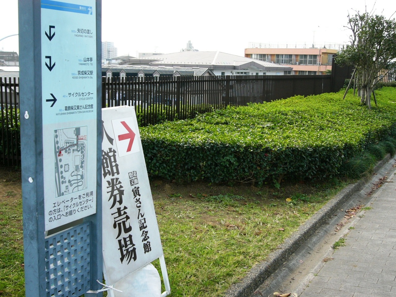 この標識をたどっていくと、レンタサイクルセンターにつながっているので、建物に入って左手のエレベータに自転車を載せこんで下りると、寅さん記念館前に出ます。