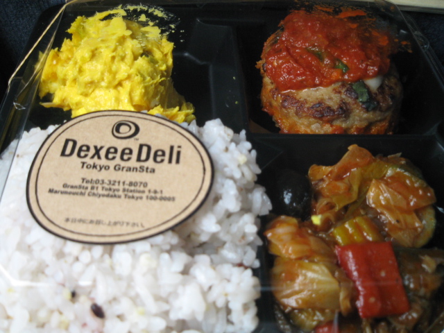お惣菜・お弁当コーナーもあったけど、どこも人がいっぱい・・・。Dexie Deliでぱっと買っていきました。750円なり。