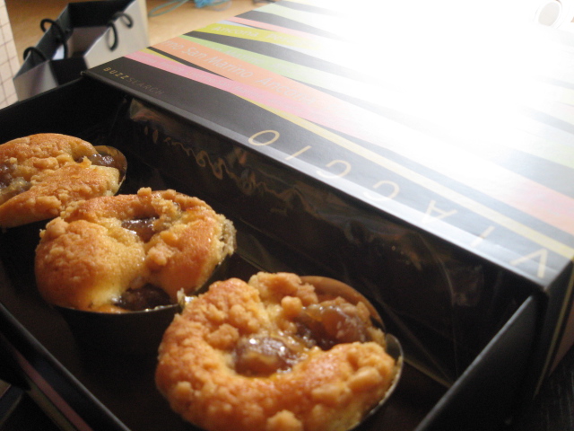 カップケーキ。マロンはあんまり好みではないけれども、しっとりとしておいしかったです。お酒がちょっと。外装が格好良いのです。