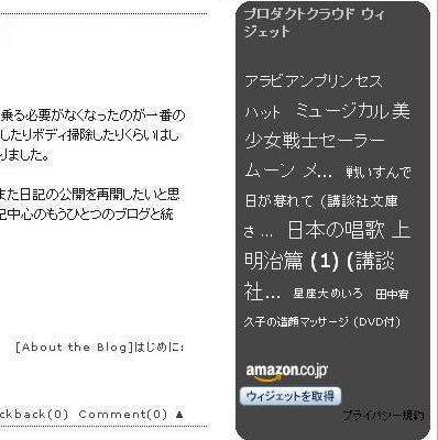 アマゾンがAmazon ウィジェット提供開始、ということで、プラグインに早速突っ込んでみました。デザイン上、プロダクト・クラウド・ウィジェットを導入。プロダクト・クラウド・ウィジェットとは: